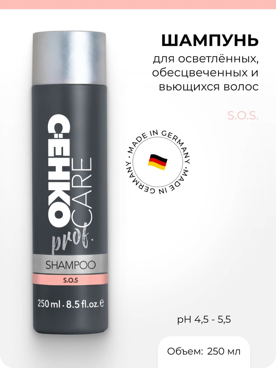 C:EHKO CARE prof. Шампунь S.O.S. для осветленных, обесцвеченных и вьющихся волос, 250 мл