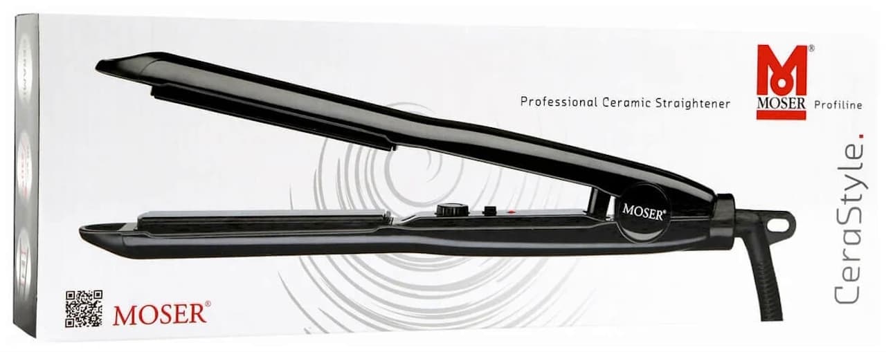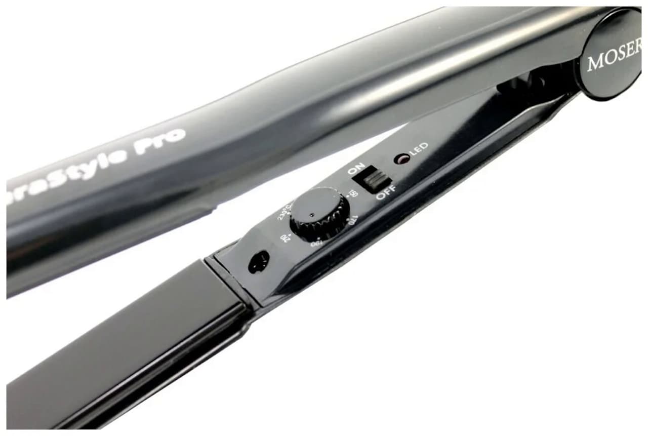 Профессиональные щипцы для выпрямления волос Moser CeraStyle Pro 4417-0050 Корпус из термоустойчивого пластика, плавающие пластины с керамическим покрытием.